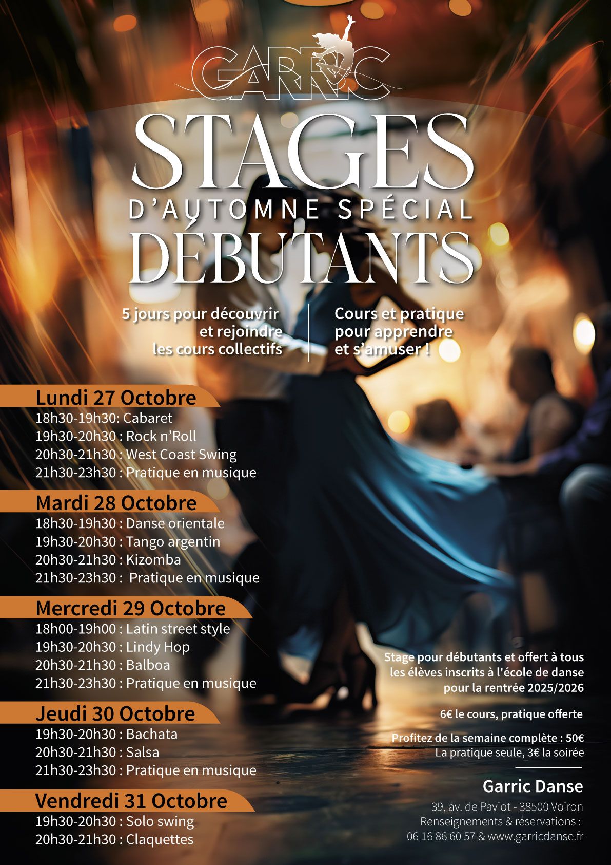 Du 27 au 31 octobre 2025 : votre semaine de stages d'initiations gratuite pour tous les inscrits cette saison!